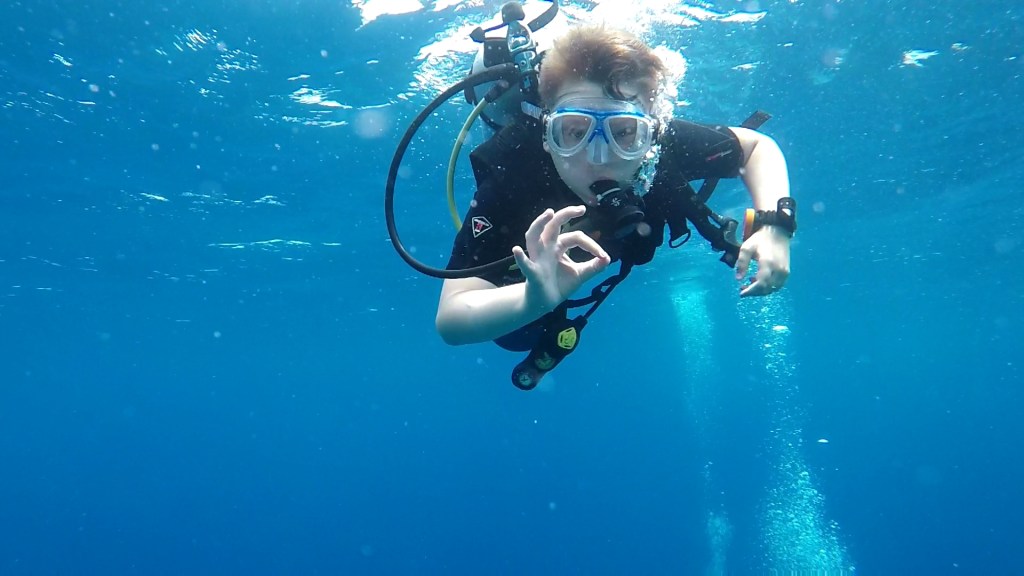 The first three dives were all business. So was most of the fourth. Getting tested on all of the things we had learned. On the forth dive, there were a few opportunities for me to use the GoPro Hero5, so that I could record these moments that will become lifetime memories for the both of us.