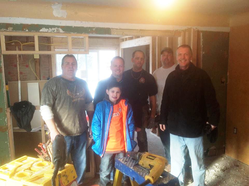 Union Photographer Ron Maracle caught this image during a visit by Mayor Rick Sollars (second from left) and his son Carson, along with Eric Waidelich (far right) of the city’s Community Development office. Union workers include Dave Pehrson, Mark Styles and Tim Zamecki. Tom Gibbons from major sponsor Home Depot was also on hand”.